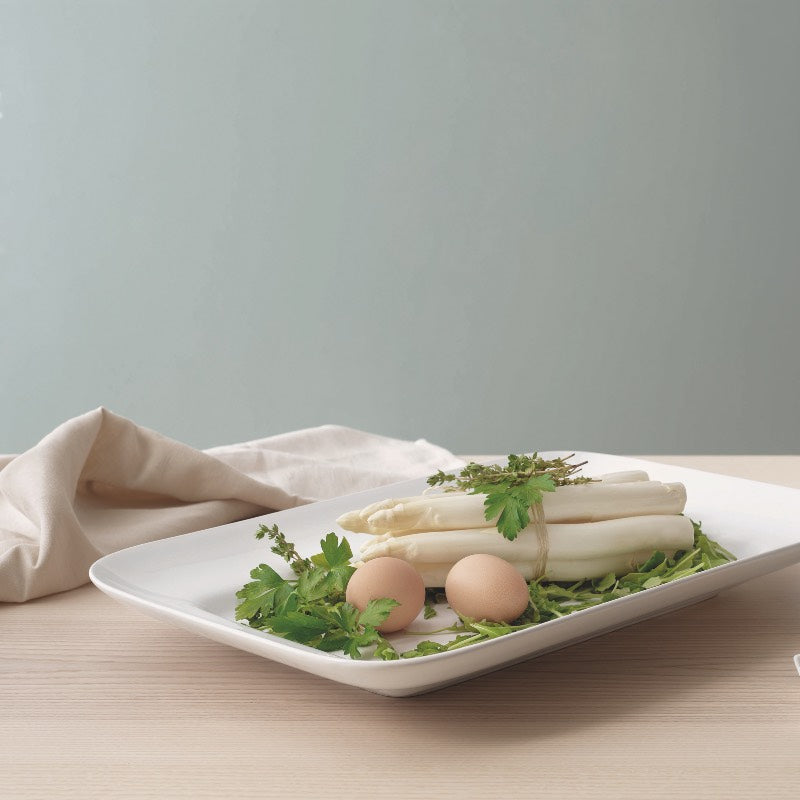 A classic and always beautiful dish, suitable for everything from salads, pasta and tapas, but also great for this year's Christmas decoration. The dish in rectangular chalk-white ovenproof earthenware is handmade and sustainably produced.