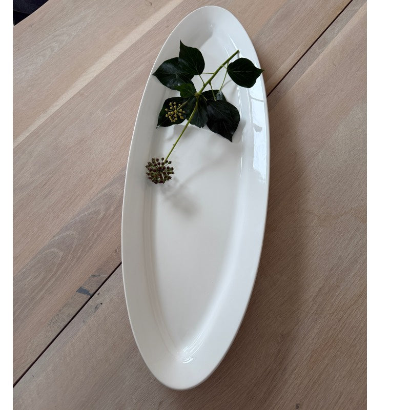 Large oval white ceramic dish for beautiful servings. Handmade and sustainably produced in a unique clear design, with character and personality. Great for salads and hot dishes on the dinner table.
