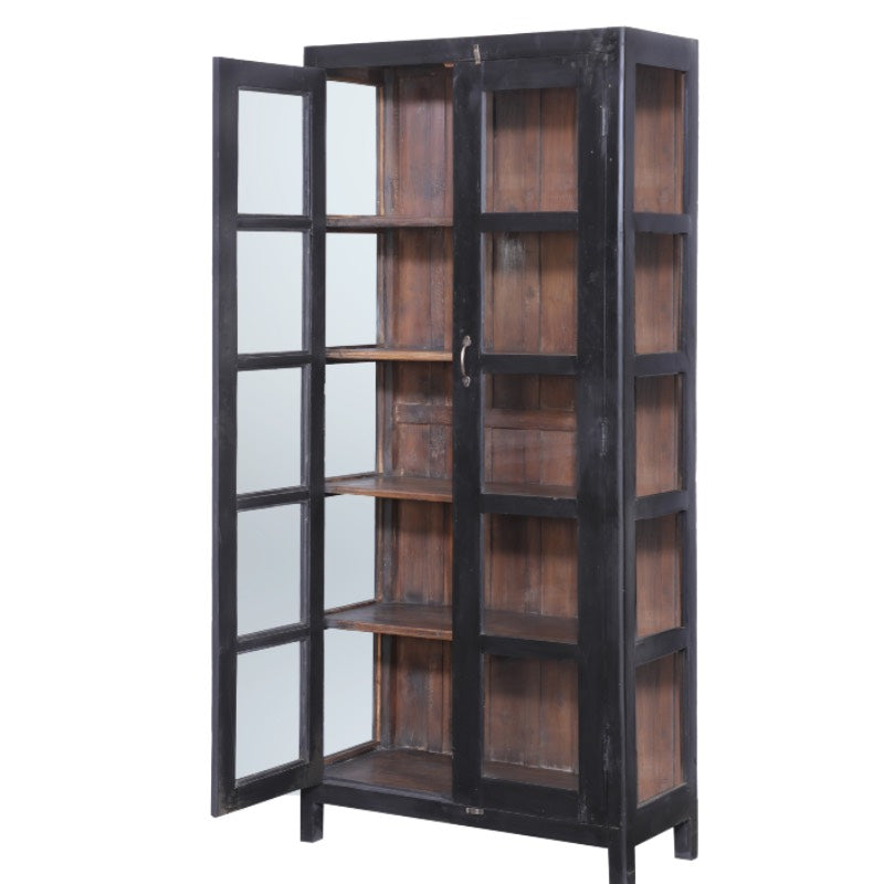 This fine display cabinet with glass doors is an old, unique cabinet that has been restored and painted black on... Read more