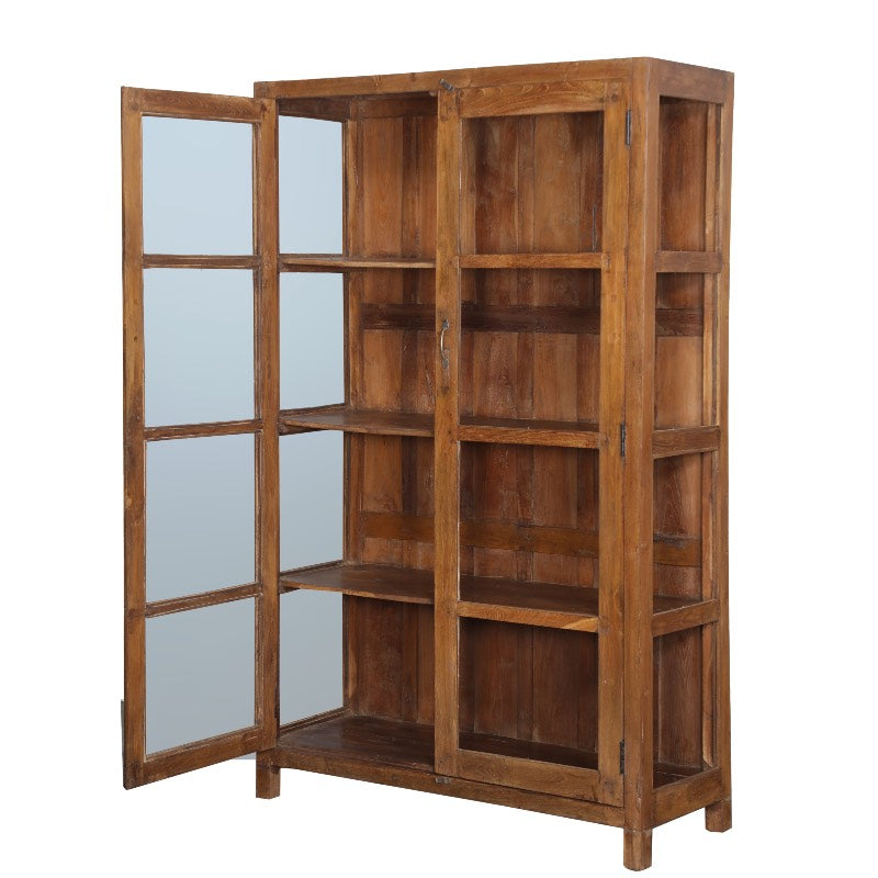 This fine display cabinet with glass doors is an old, unique cabinet that has been restored and painted black on the outside and white on the inside, which makes the cabinet brighter and that the things you store in the cabinet are more visible. The cupboard has four shelves, if you count the bottom, and is designed for storing glass, porcelain or books and magazines.