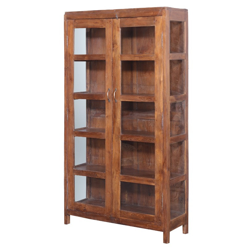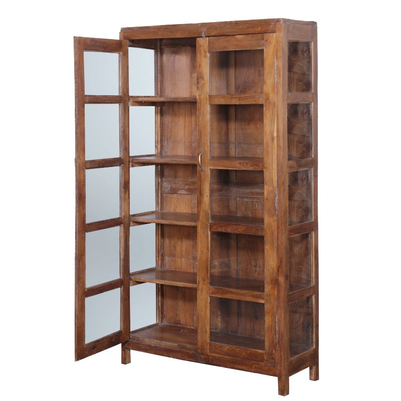 This fine display cabinet with glass doors is an old, unique cabinet that has been restored and painted black on the outside and white on the inside, which makes the cabinet brighter and that the things you store in the cabinet are more visible. The cupboard has four shelves, if you count the bottom, and is designed for storing glass, porcelain or books and magazines.