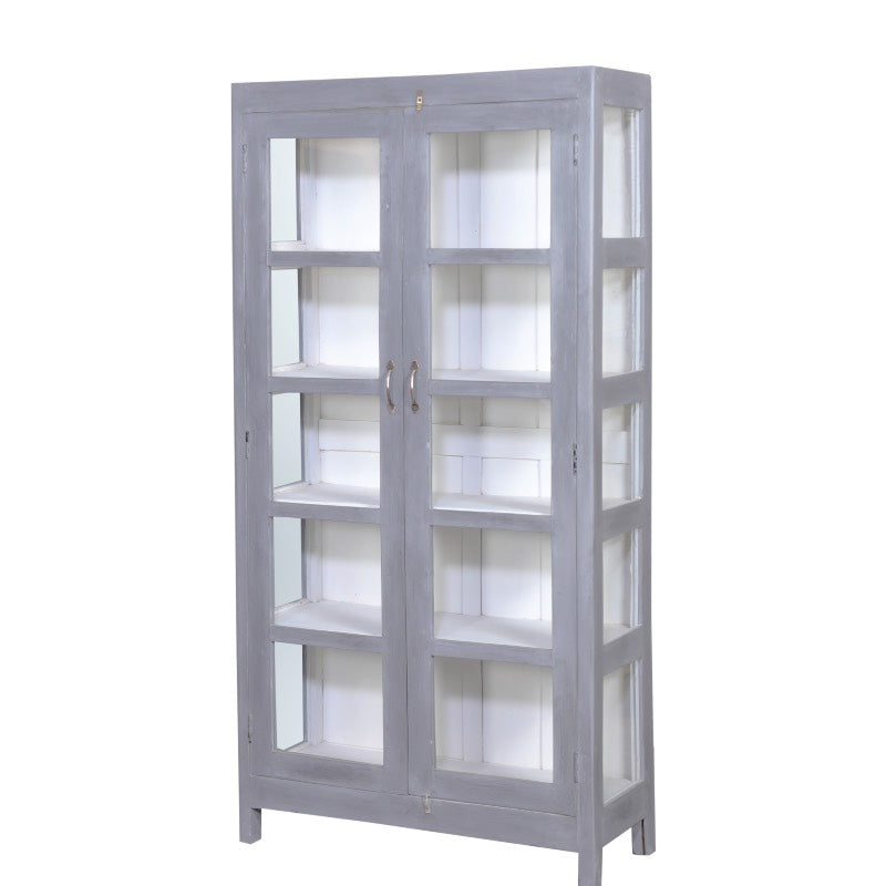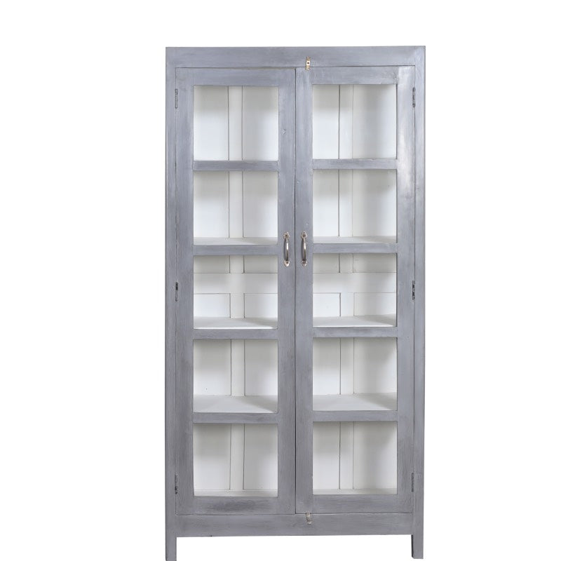 This fine display cabinet with glass doors is an old, unique cabinet that has been restored and painted black on the outside and white on the inside, which makes the cabinet brighter and that the things you store in the cabinet are more visible. The cupboard has four shelves, if you count the bottom, and is designed for storing glass, porcelain or books and magazines.