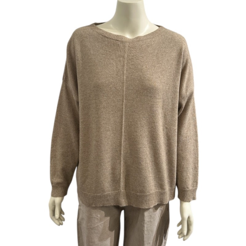 Cashmere blend strik med rund hals og guldnitter på ærmet. Blusen er dejlig blød og fineds i fire farver.