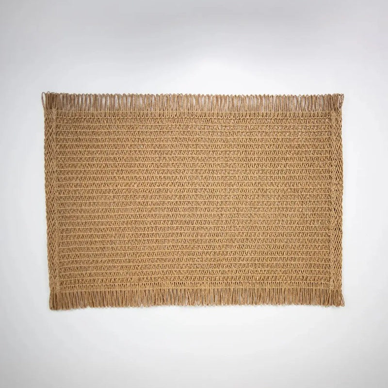 Dækkeserviet produceret af pappersraffia, - dette naturmateriale har et flot, lidt rådt udtryk.
