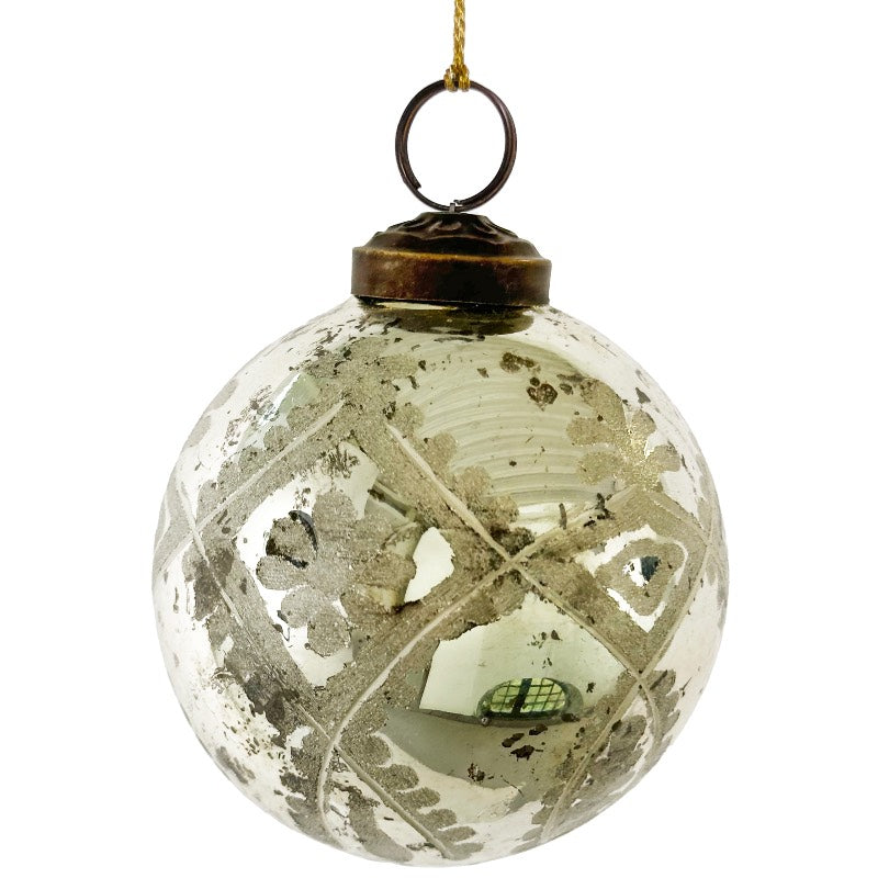 Glaskugle i antik look m. engravering og glittermønster 8cm