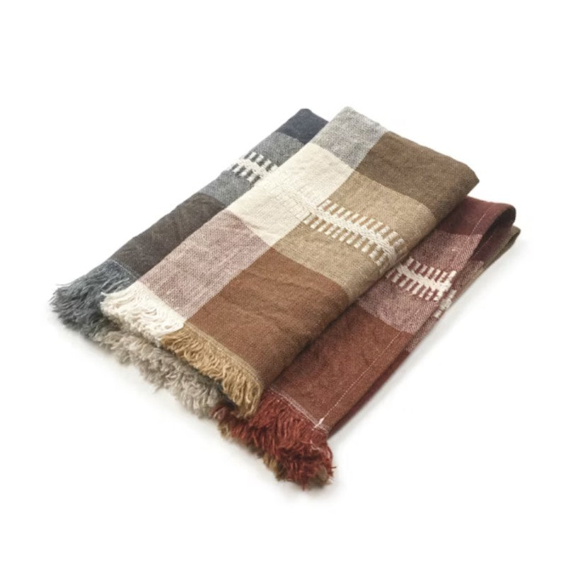 Meget smuk hør dug i rolige farver, passer perfekt til både inde og ude.