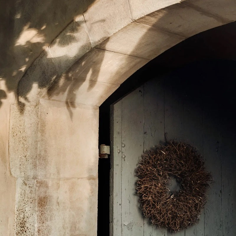Meget dekorative krans lavet af tørrede grene, - kransen kan både bruges inde og ude.