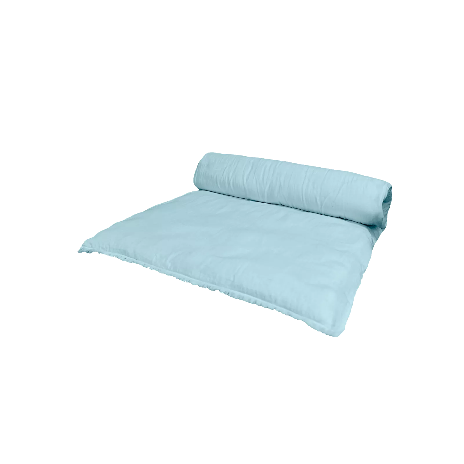 Lækkert vatteret madras underlag i hør med frynser rundt i hele kanten.