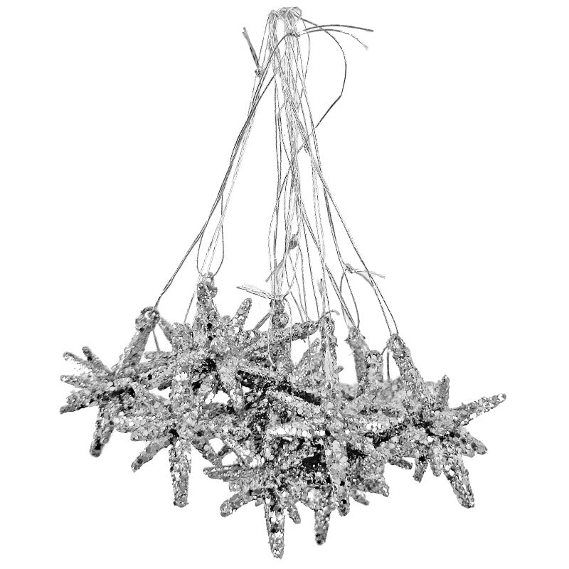 Små fine sølvstjerner med glitter til ophæng 12stk