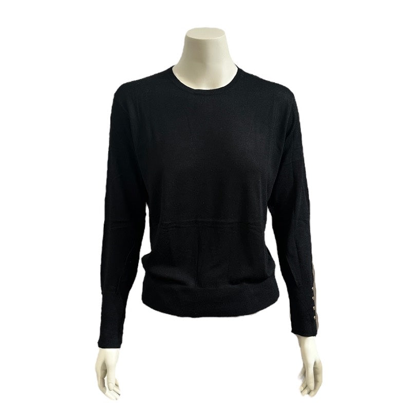 Strik bluse med rund hals og guldnitter på ærmet. Denne fine tynde strik er perfekt under en strikbluse, cardigan eller jakke. Blusen findes i 5 farver.