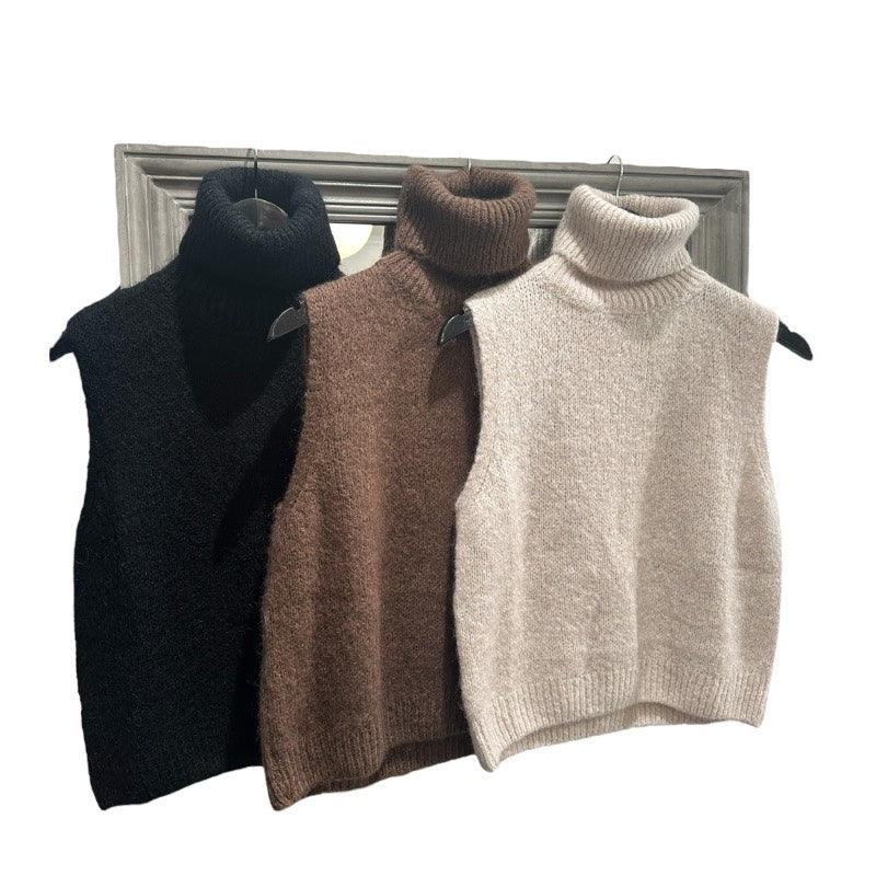 Strik vest med rullekrave. Vesten findes i tre farver.