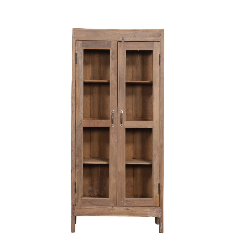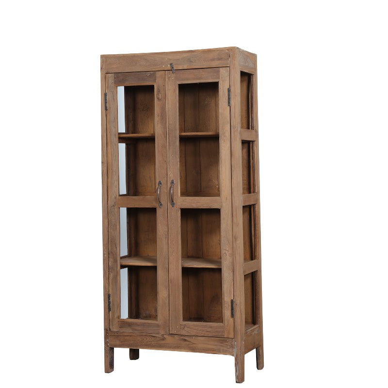 Dette fine vitrineskab med glas låger er et gammelt unika skab, der er restaureret. Skabet har fire hylder hvis man tæller bunden med. Skabet er som skabt til opbevaring af alt fra porcelæn til linned, bøger eller dit hjemmekontor.