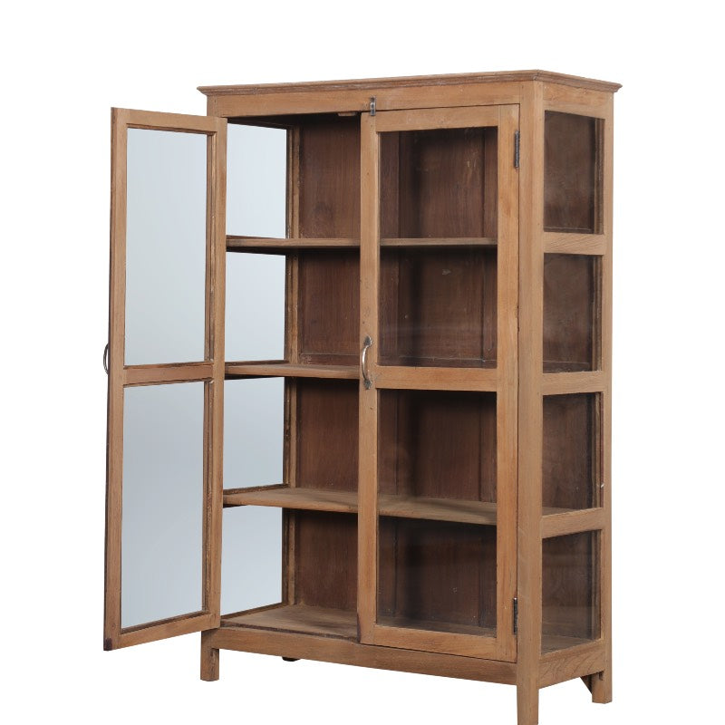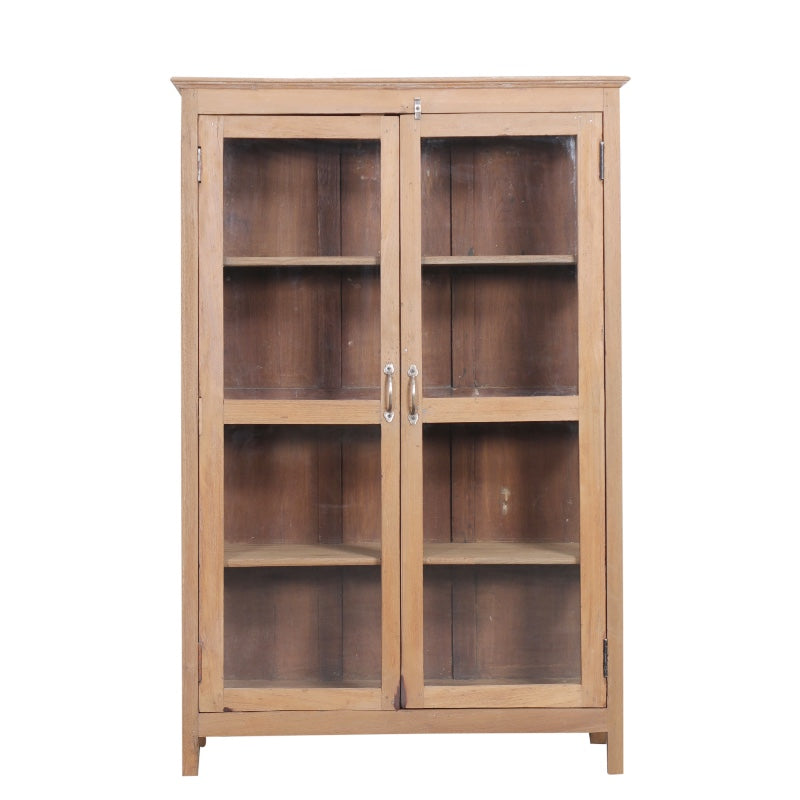 Dette fine vitrineskab med glas låger er et gammelt unika skab, der er restaureret. Skabet har fire hylder hvis man tæller bunden med. Skabet er som skabt til opbevaring af alt fra porcelæn til linned, bøger eller dit hjemmekontor.